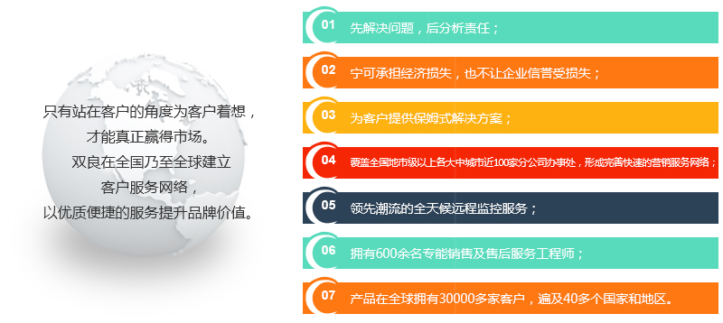 100多家分公司及辦事處遍布國(guó)內(nèi)外,700 余名專(zhuān)職銷(xiāo)售及售后服務(wù)工程師,全天24 小時(shí)為客戶提供保姆式一體化服務(wù)支持。從最初的“先解決問(wèn)題、后分清責(zé)任”、“設(shè)備所有權(quán)屬于用戶、質(zhì)量權(quán)屬于雙良”、“寧可經(jīng)濟(jì)受損失,也不讓企業(yè)信譽(yù)受損失”等服務(wù)承諾,到“追求零故障、追求零投訴”、“一站式、系統(tǒng)級(jí)服務(wù)”、“專(zhuān)家+管家式服務(wù)”等服務(wù)理念,雙良一直將服務(wù)文化深植于企業(yè)文化、組織流程和員工思維模式之中,根據(jù)客戶需求提供個(gè)性化、定制化的服務(wù)。